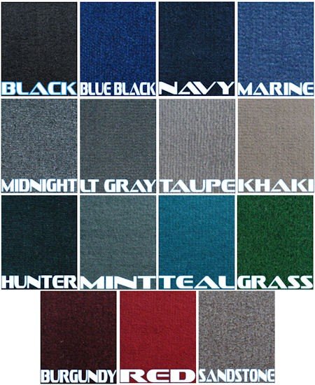 Our 16oz Marine Grade Carpeting can be used on any marine or outdoor application. Perfect carpeting for any type of boat - Bass Boats, Wakeboard Boats, Ski Boats, Deck Boats and Pontoon Boats. Our carpeting may also be used on your Patio or Deck.